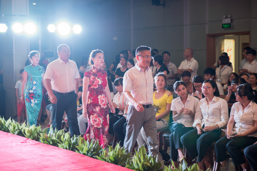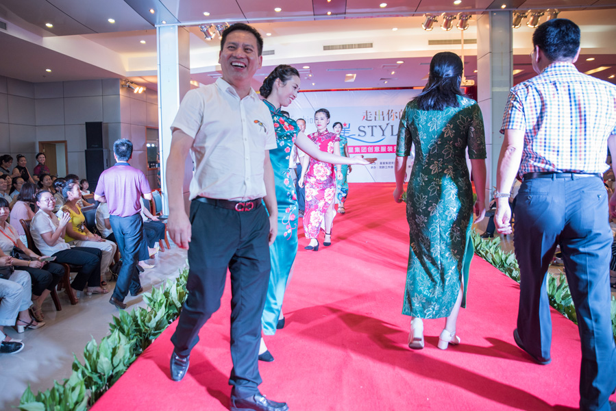 9月7日晚,鸿运国际集团的大会议室里,盛装上演了一场由鸿运国际人自创自编自导的鸿运国际第16届文化艺术节的小高潮项目——走出你的星STYLE,鸿运国际集团职工创意服装秀。来自鸿运国际旗下各子公司、不同岗位的“女神们”在舞台上传递着她们的自信、妩媚及神采飞扬。椒江区委宣传部副部长姜泾,集团常务副总裁蒋亦标,集团党委书记、副总裁陈华明,集团副总裁林海平,鸿运国际冷链公司董事长杨文勇,鸿运国际科技公司董事长王先玉,鸿运国际便洁宝公司总经理黄朝阳,集团财务管理中心主任泮玲娟,水晶光电公司人力资源中心副总监李群等领导出席并观看了秀。其中,集团党委书记陈华明为本场秀作了致辞。